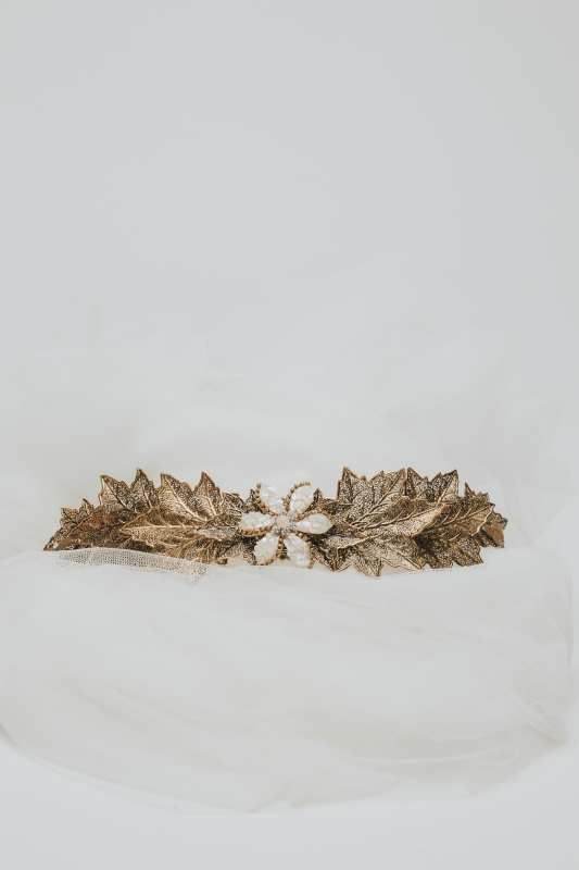 Cinturón de nácar y base de hojas dorado viejo