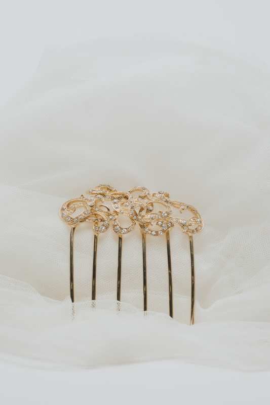 Peine de ondas en dorado y zirconitas