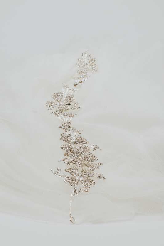 Tocado flexibel asimetrico de mayor a menor en forma de hojas