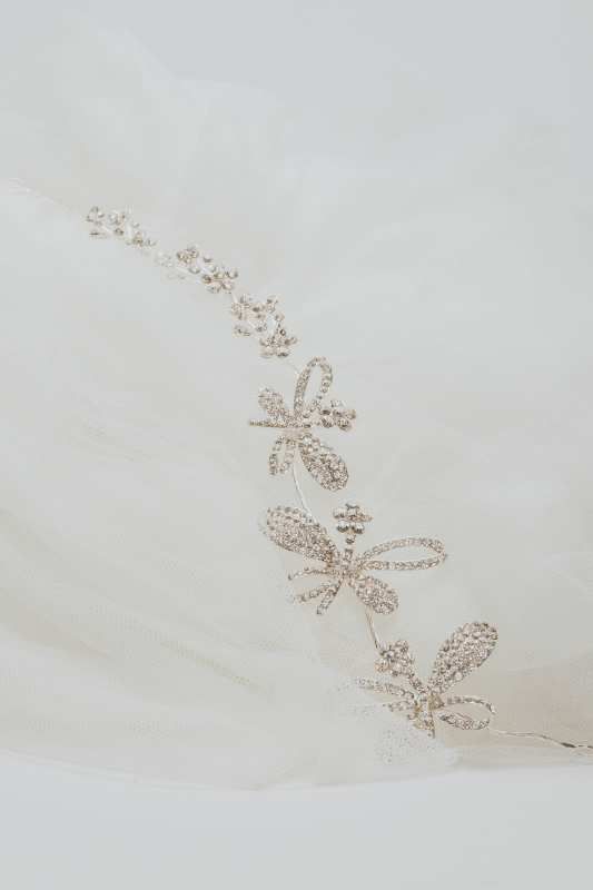 Tocado flexible asimetrico en forma lazos