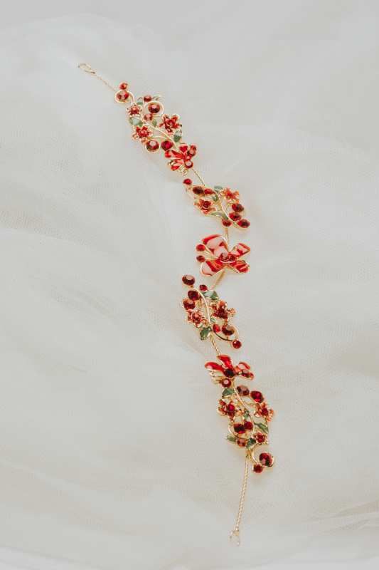 Tocado flexible con piedras en rojo