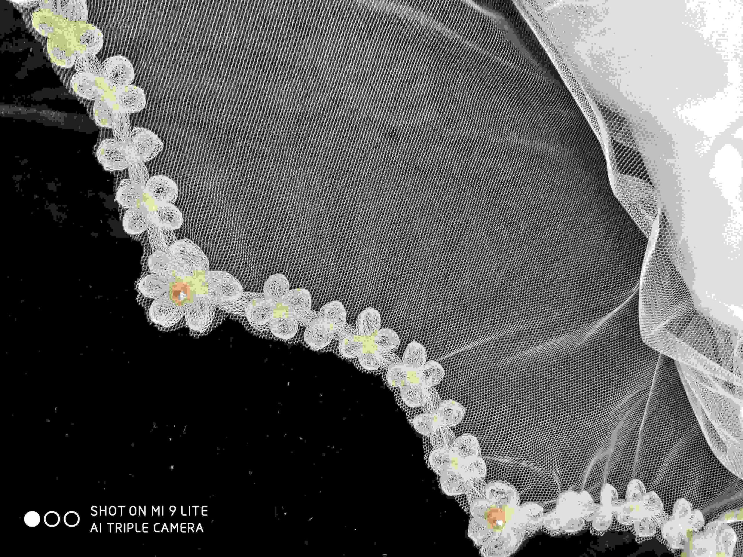 Velo ilusión de flores de tul en color marfil. Medida 200 x 200 cm.