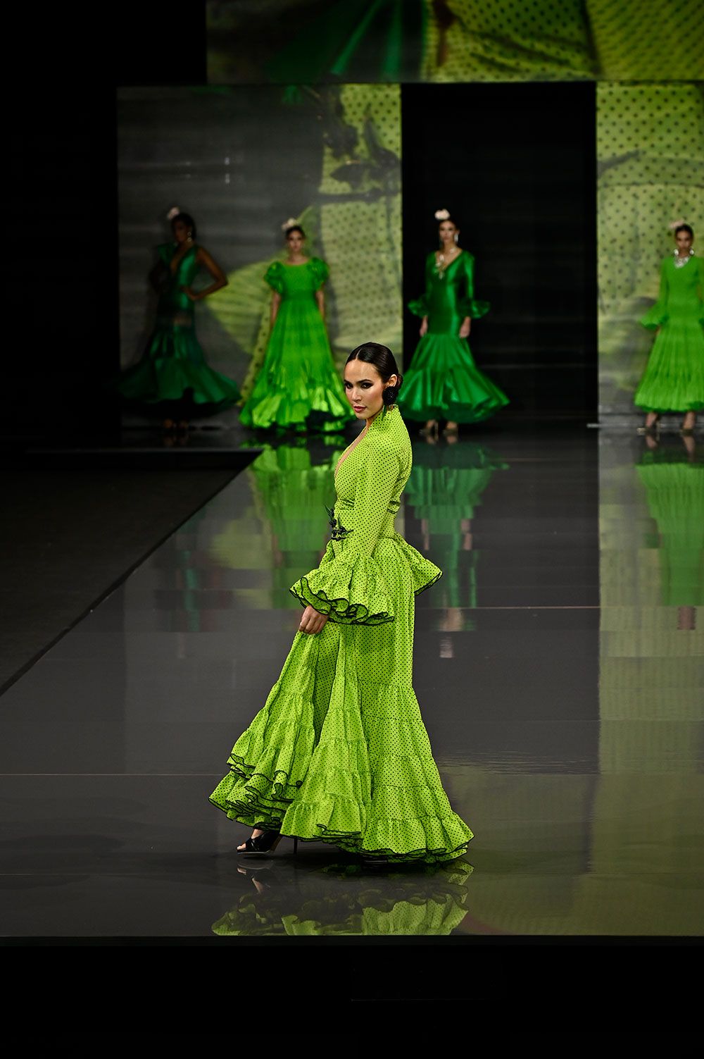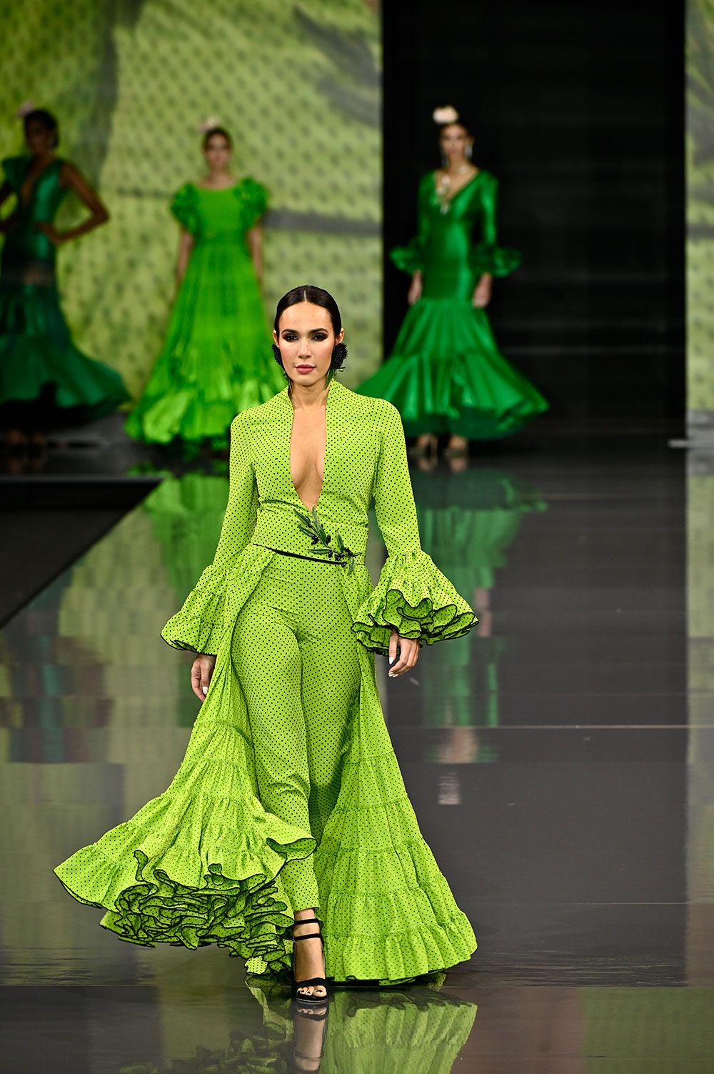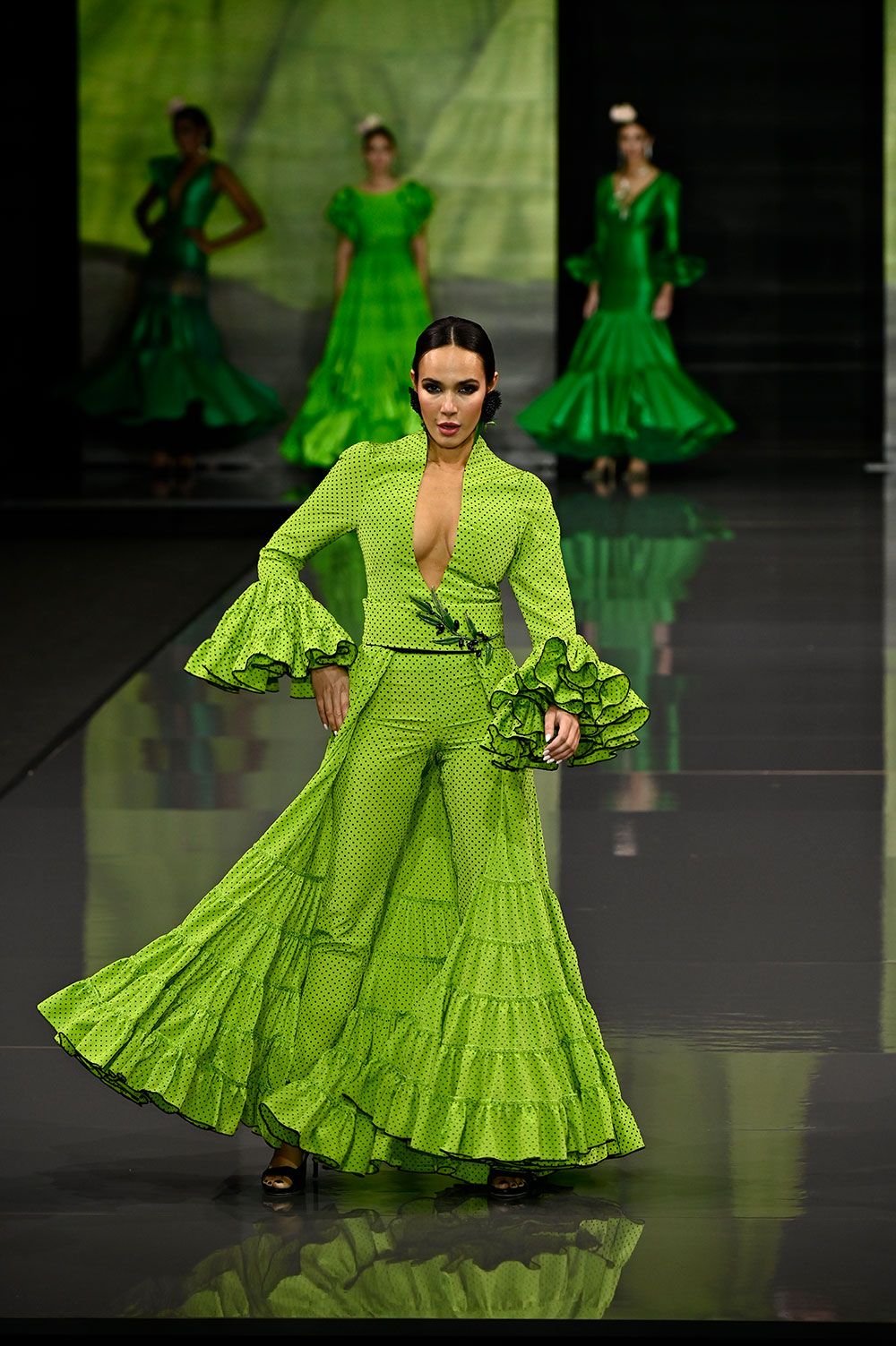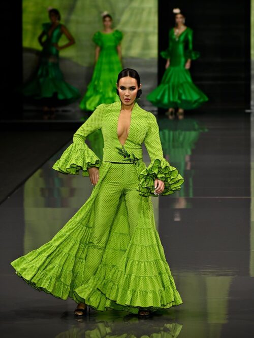 Vestido canastero con pantalón verde lima