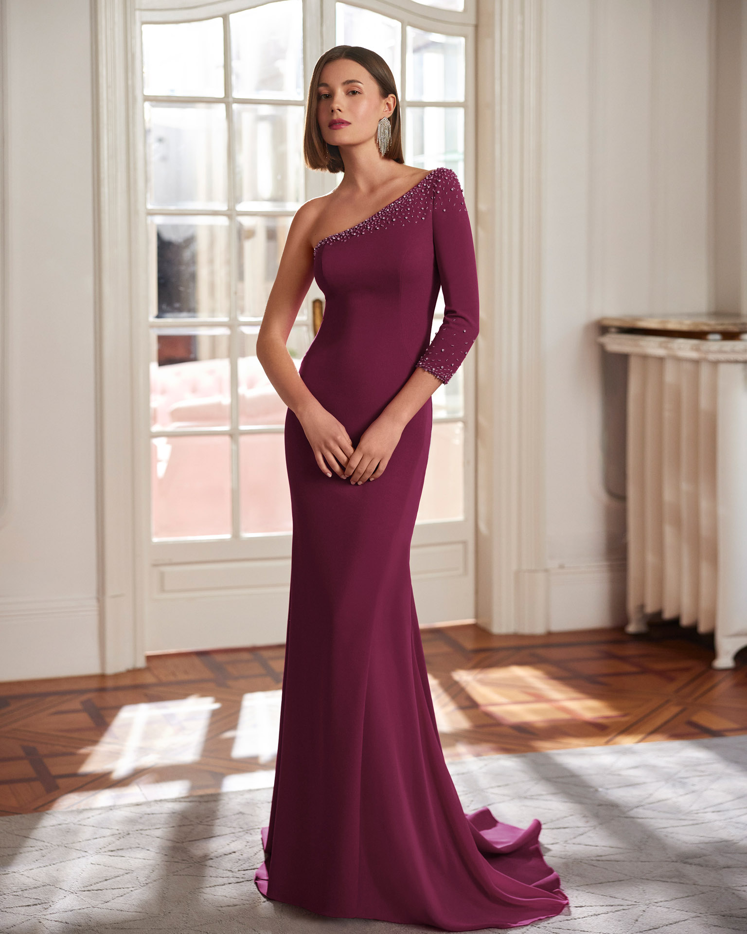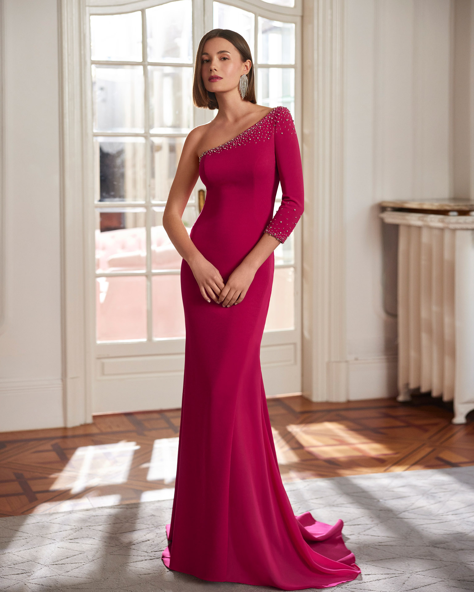 VESTIDO CEREMONIA ASIMETRICO CON MANGAS DESMONTABLES cantidad