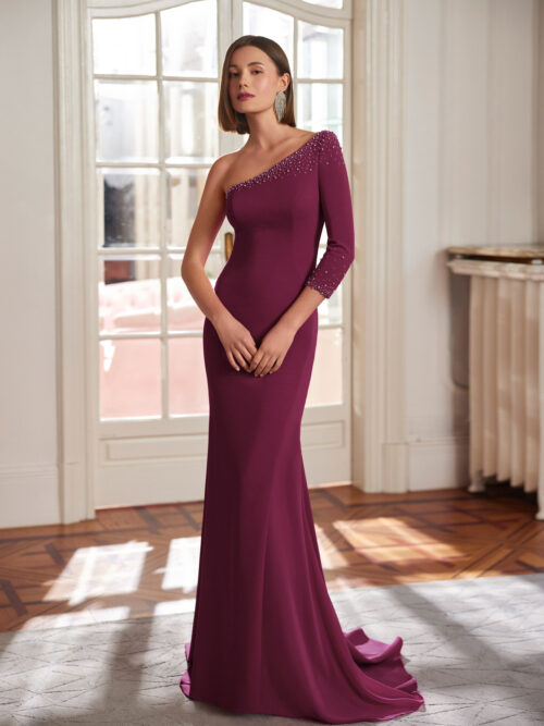 VESTIDO CEREMONIA ASIMETRICO CON MANGAS DESMONTABLES
