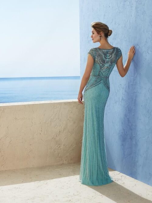 Vestido verde claro pedrería plomo