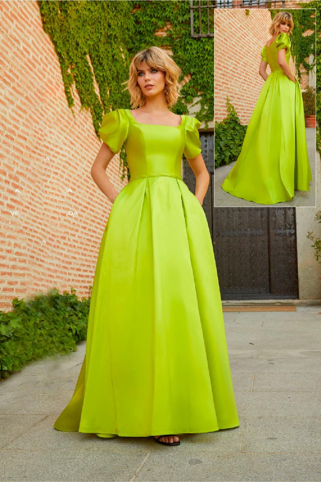 Vestido verde pistacho mangas volumen