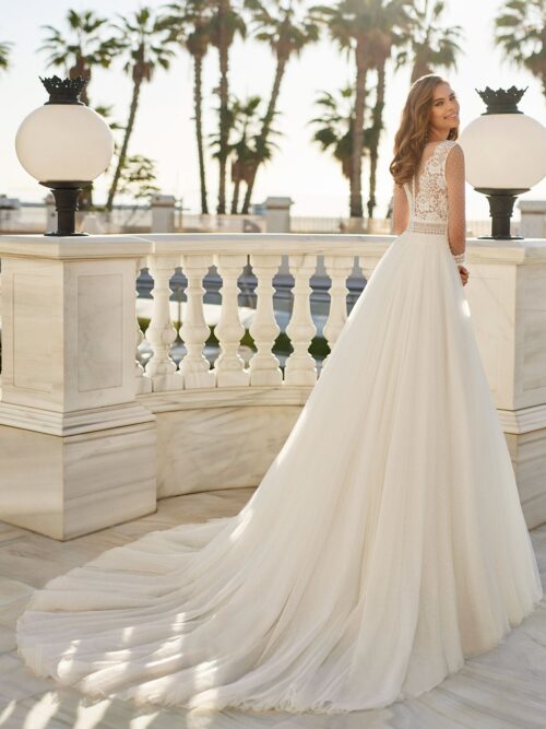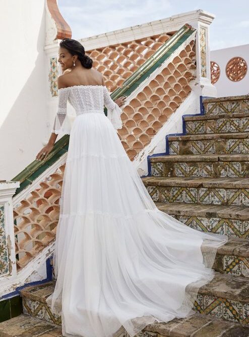 Explora los vestidos de novia flamencos, donde tradición y estilo se funden: faldas amplias, volantes, detalle en la caída y tejidos de gran presencia para novias que quieren aportar un carácter flamenco auténtico a su gran día. Un look que destaca por su fuerza, movimiento y elegancia.